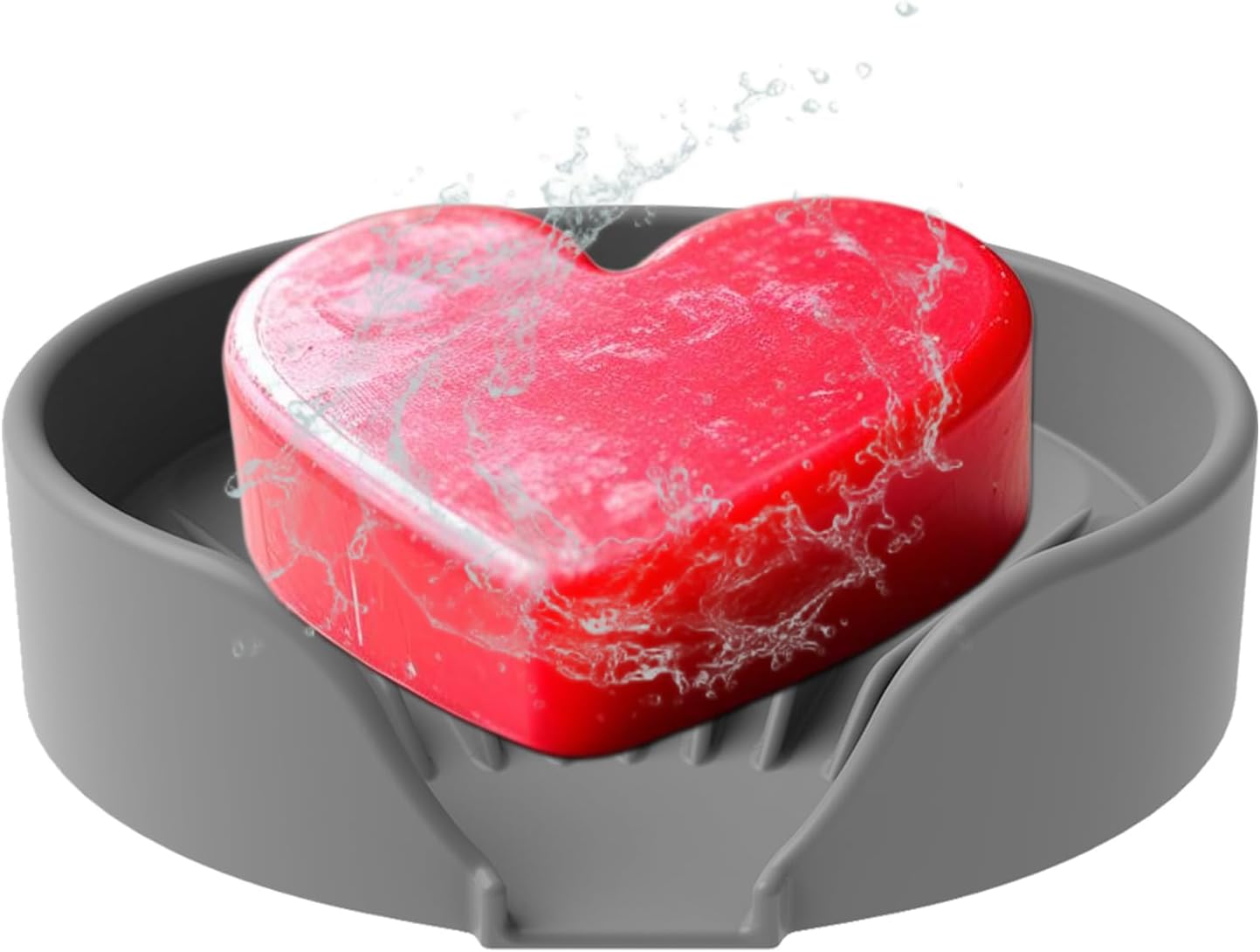 - Self Draining Soap Dish: The silicone shower soap dish is designed with an raised surface and a drain spout. It can automatically drain water into the sink, prevents soap from getting mushy and water from pooling on the countertop, keeping both clean