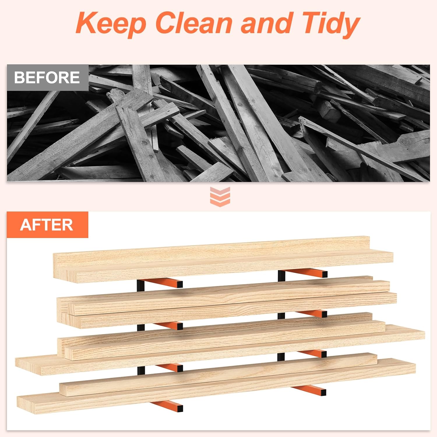 - Convenient and Space-Saving Storage Solution: The Utility Racks are designed to offer a reliable and compact storage option for organizing your wood, tools, and other items with ease. These wall-mounted racks provide both strength and convenience, making it a practical choice for keeping your belongings in order and easily accessible.