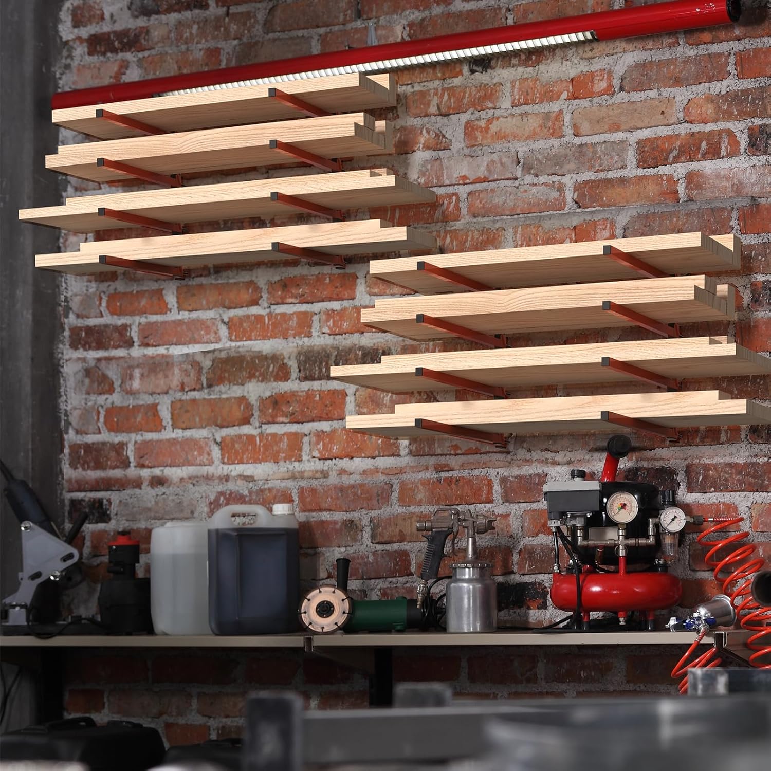 - Versatile Organizer: With 4 levels, this wood rack is designed to optimize storage for a wide range of items, providing convenience and efficiency in keeping your space clutter-free and well-organized. From lumber and ladders to power tools and garden tools and so on๏ผthis versatile rack offers ample space in your house, garage, basement, shed or workplace.