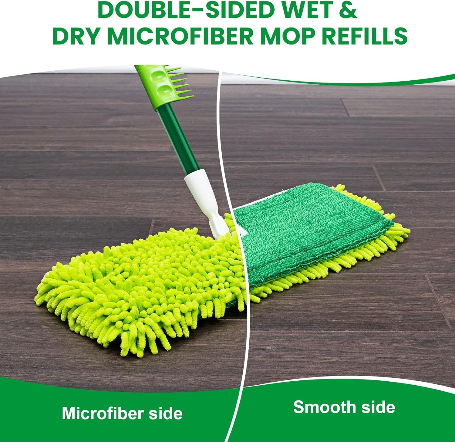 - Efficient Cleaning: Our 18" 2-Sided mop refills are made of microfiber material that absorbs dust, dirt, and pet hair. Its strong water absorption makes it easy to capture fine dust and dirt, leaving your floors looking brand new.