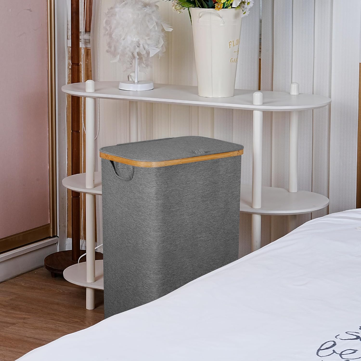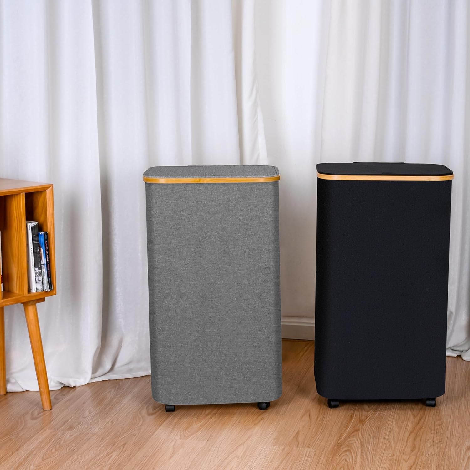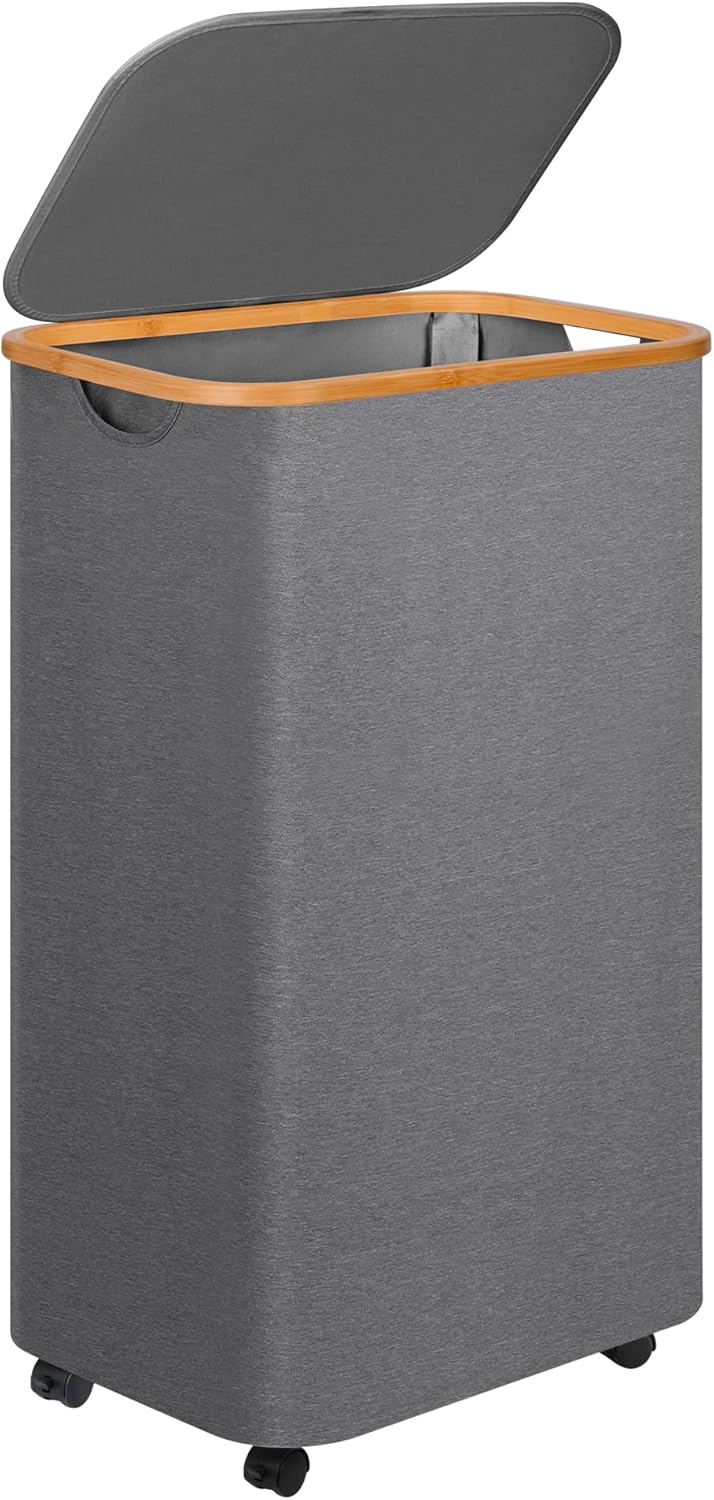 Laundry Basket with Wheels,100L Hampers for Laundry,Large Laundry Hamper with Lid and Bamboo Handles,Collapsible & Waterproof Tall Cloth Hamper for Dormitory Family,Grey
