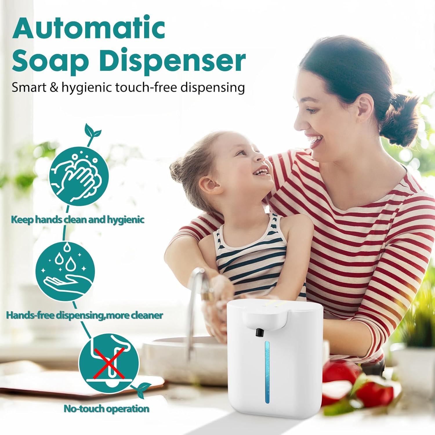 - 【FLEXIBLE INSTALLATION & RECHARGEABLE】Mount it easily on the wall or place it on any countertop. This automatic foaming soap dispenser includes a USB cable for convenient recharging and offers up to two months of operation per charge (based on typical household use), eliminating the need for battery replacements.