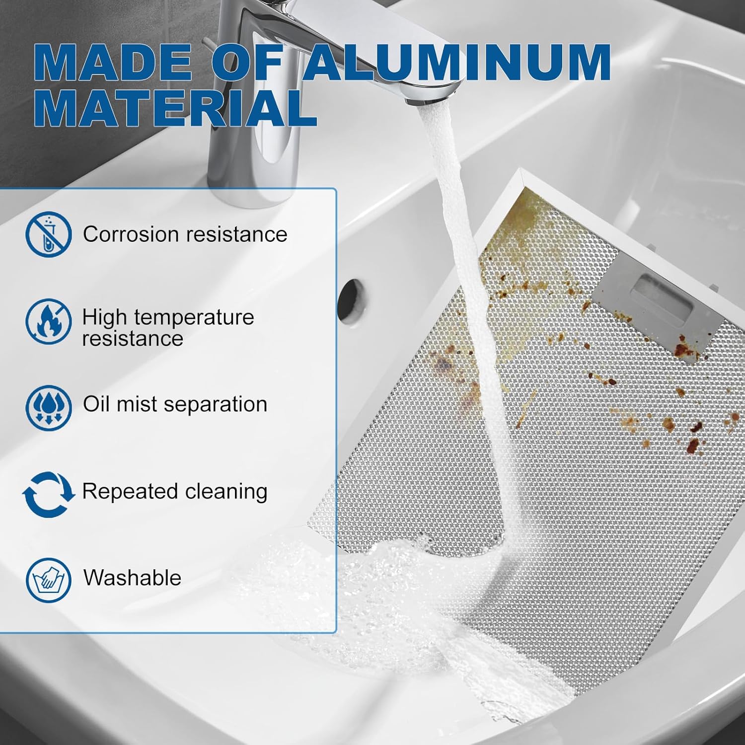 - ENHANCED FILTRATION: Our range hood filters feature an advanced 5-layer aluminum mesh design that effectively captures grease and cooking residue. Stove vent filter is expertly constructed and enhanced to be thicker than the industry standard enabling our hood filters for kitchen to stop more grease from entering