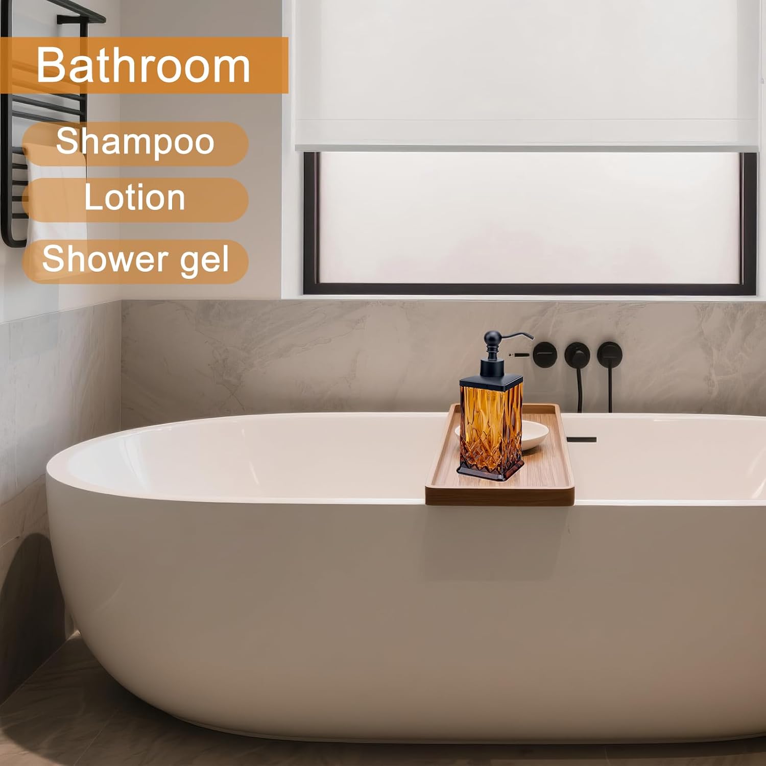 - Square Diamond-Grid Pattern Decor: Amber Pretty Soap Dispenser Bathroom with Faceted Cuts.Elevates Spaces as Crystal Bathroom Accessories & Modern Soap Dispenser.