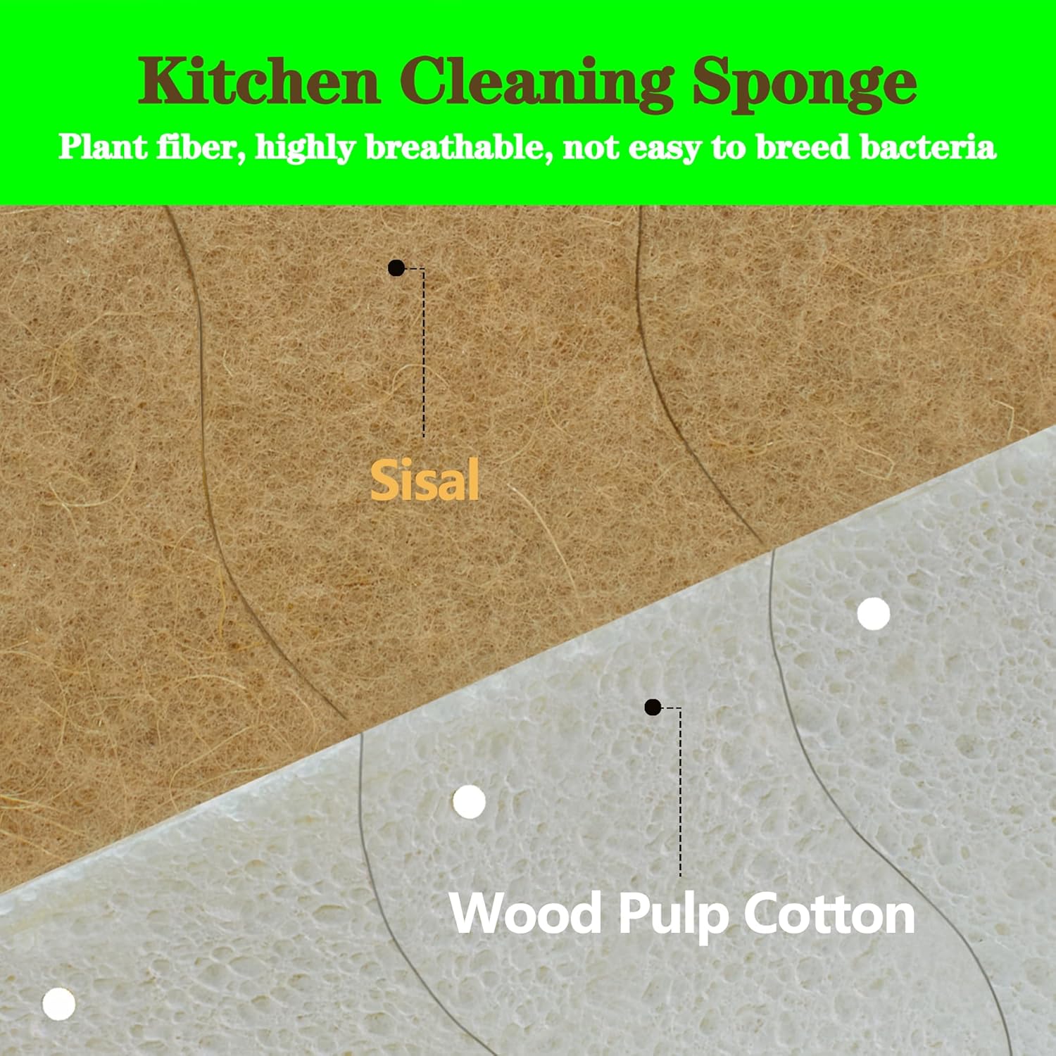 - Features a powerful sisal fiber side that effortlessly removes burnt-on food and tough stains, paired with a smooth wood pulp side that absorbs water and oil quickly