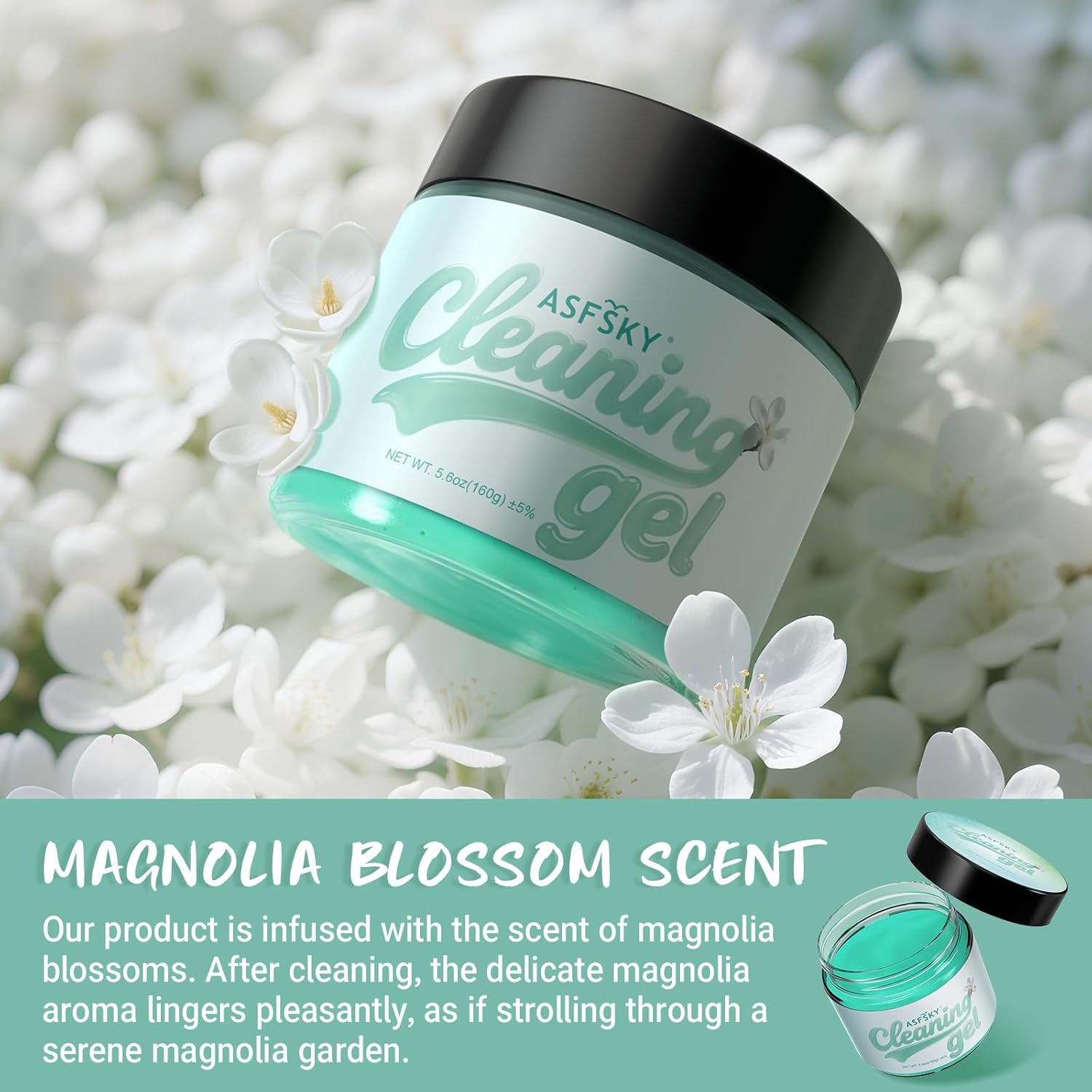 ASFSKY Car Cleaning Gel (Green,Magnolia) Cleaning Putty Universal Dust Cleaning Car Interior Cleaner Keyboard Dust Remover Car Slime Gifts for Men Women Girl(1 Pack)