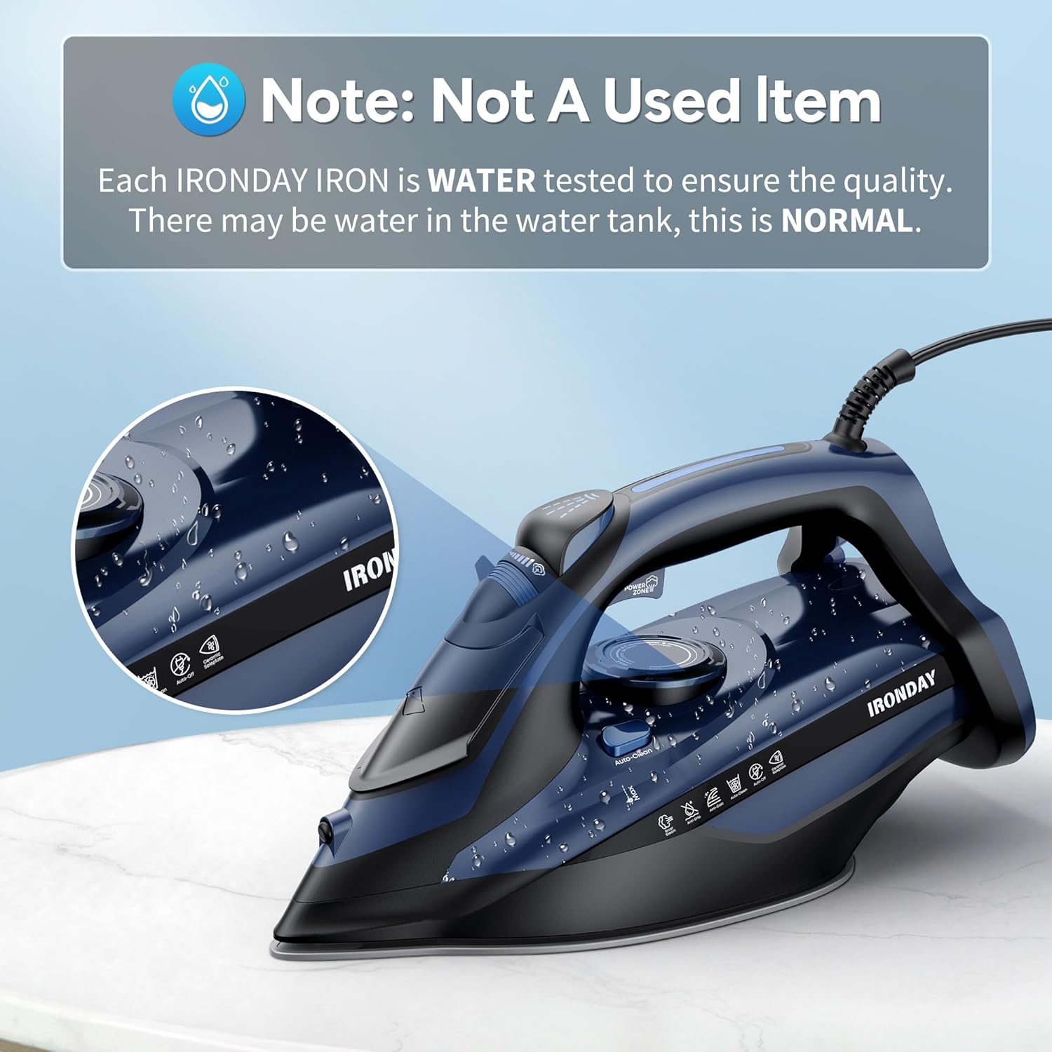 • [Quality Tested] Each IRONDAY steam iron is WATER TESTED before leaving the factory to ensure the quality and safety of the product, so some water may remain in the water tank, which is NOMAL for the pre-testing process