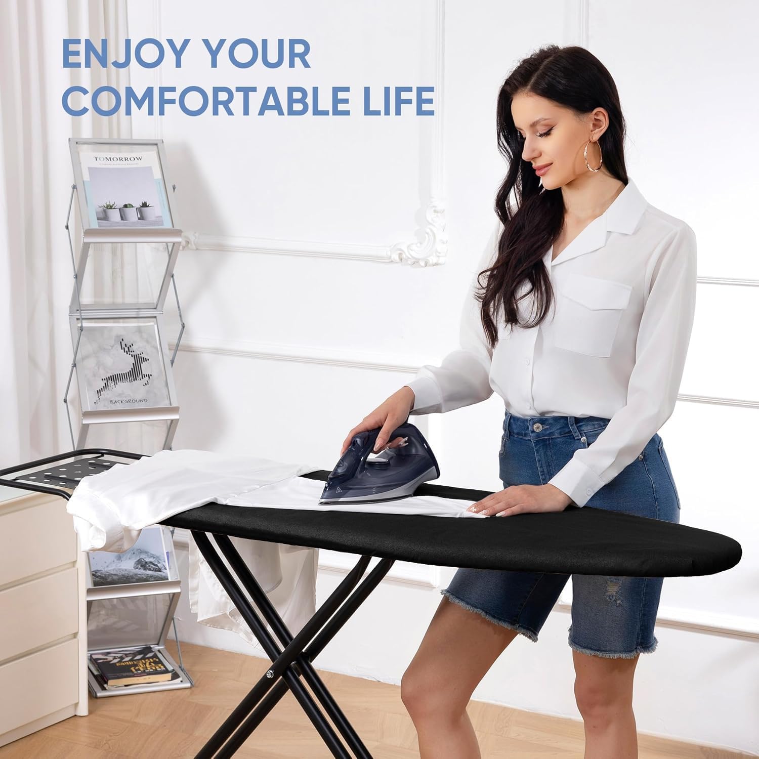 Full Size Ironing Board 47" X 15" with Heat Resistant Cover and Thicken Felt Pad, Safety Iron Rest, Anti-Skid Feet, Height Adjustable, Heavy Duty,Black