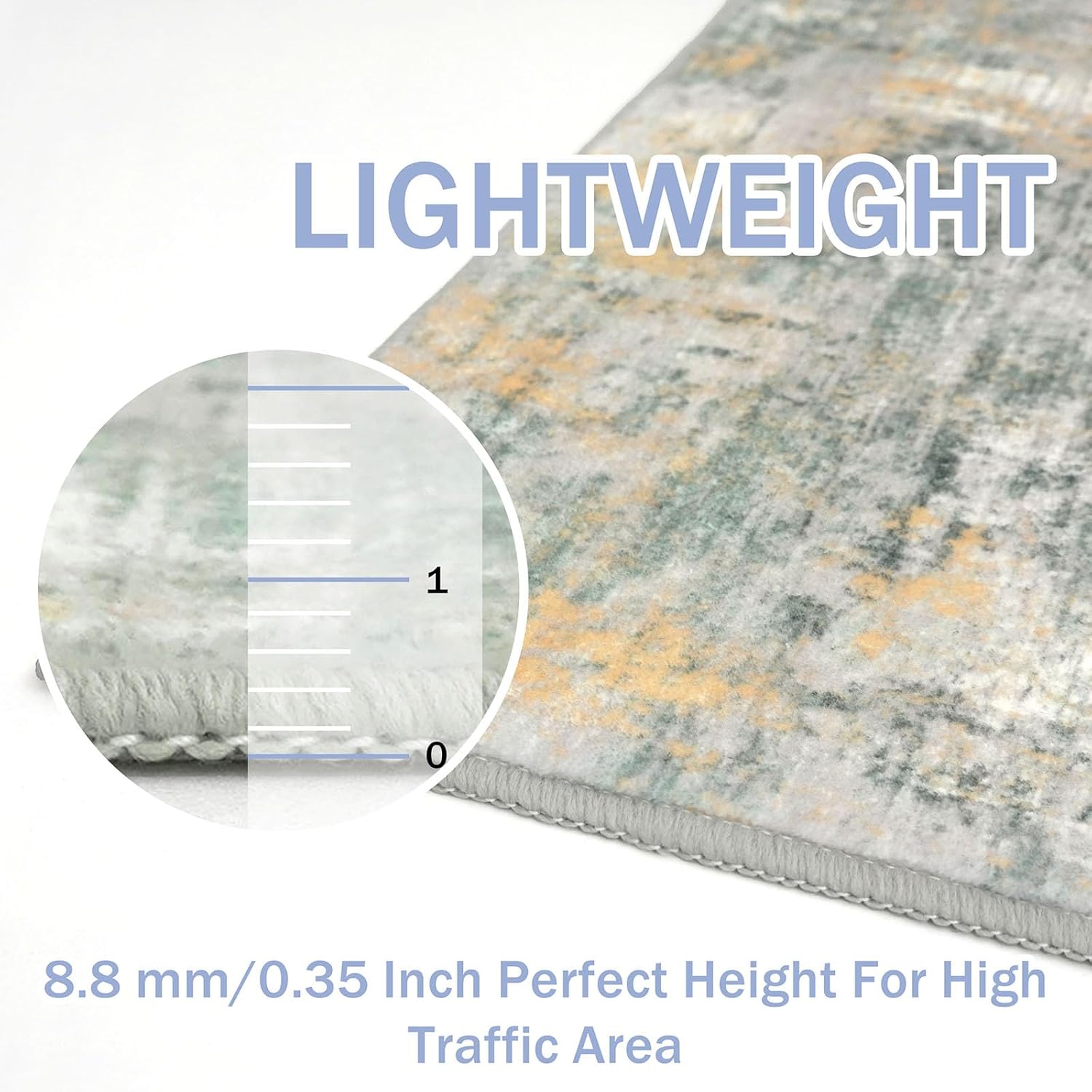 - Key Attribute: Size: 2' x 6'(24"x72"); Style: Printed Abstract Modern; Thickness: 0.35 in.; Color: Light Green, gray, orange. Note: Due to differences in computer monitors, the rug colors may vary slightly