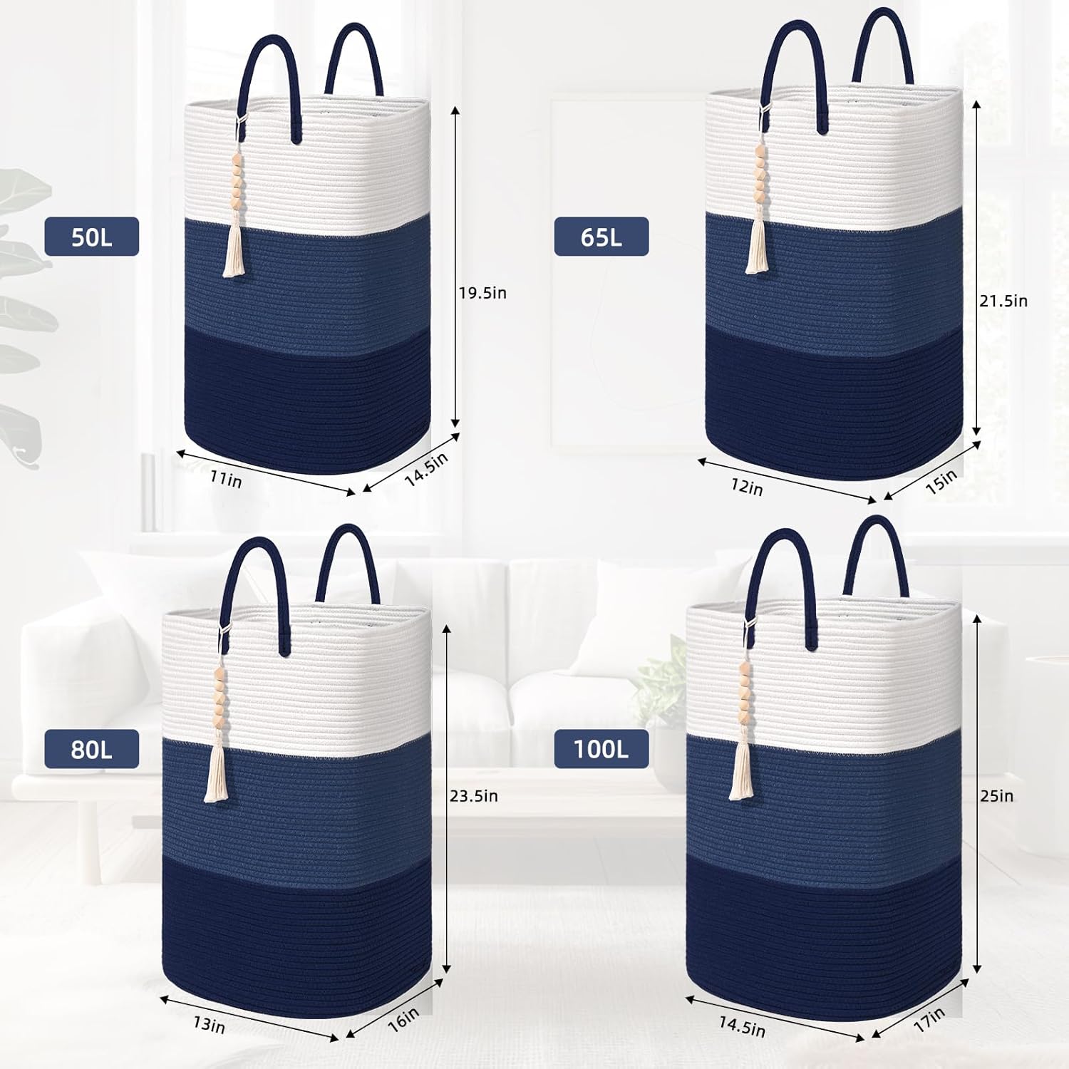 - š»[SPACIOUS STORAGE & FOLDABLE BASKET]: Laundry basket with 50 L, 65 L, 80 L, 100 L capacities that effortlessly accommodates your different laundry needs, allowing you to store your clothes conveniently. Tall storage basket also foldable, making it easy to store away when not in use.