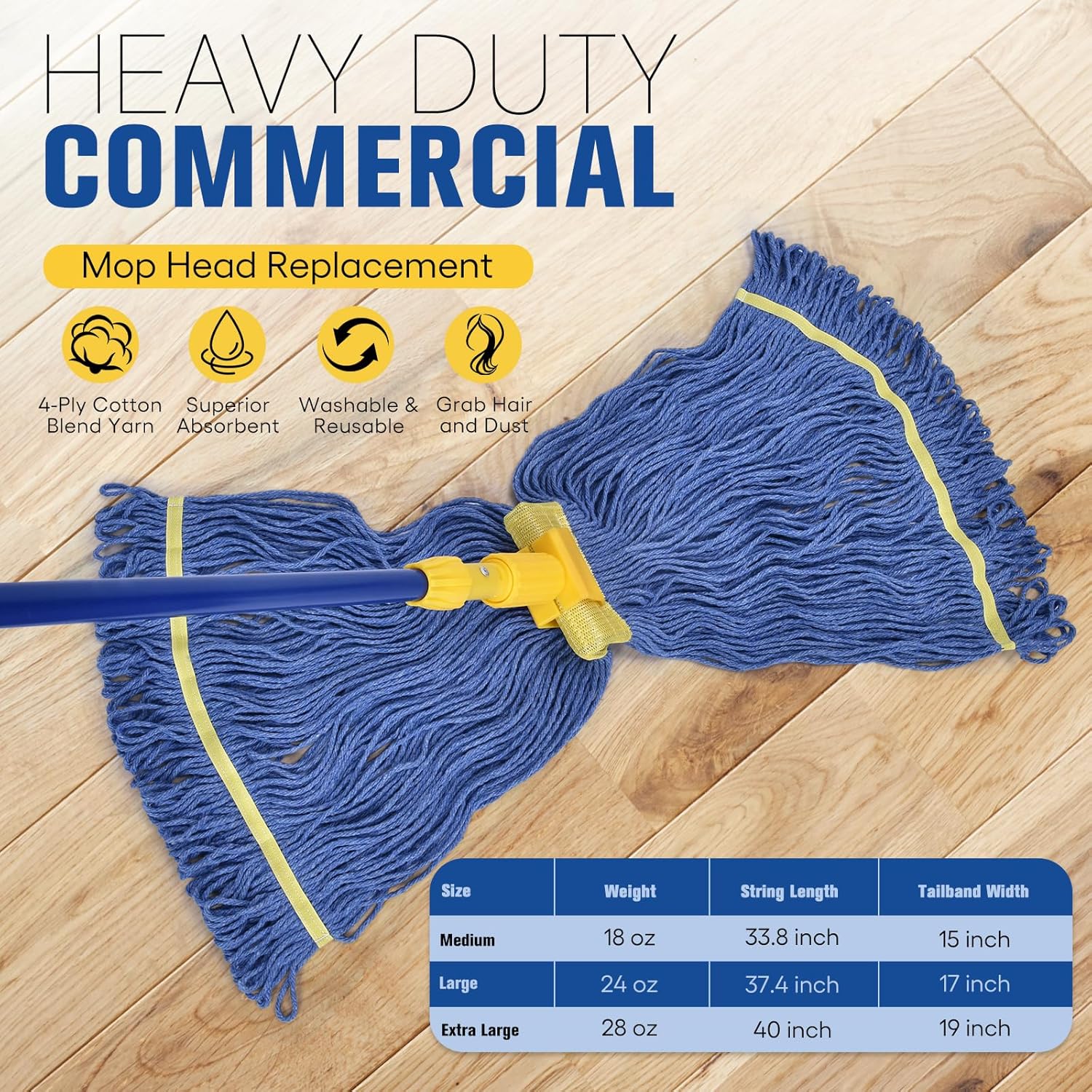 - 4-Ply Cotton Blend String: Constructed with a 4-ply twist yarn made from 60% post-industrial cotton, 25% synthetic fibers and 15% rayon. Combining the advantage of several fibers that offers exceptional water absorption and strength for effective floor cleaning and drying.