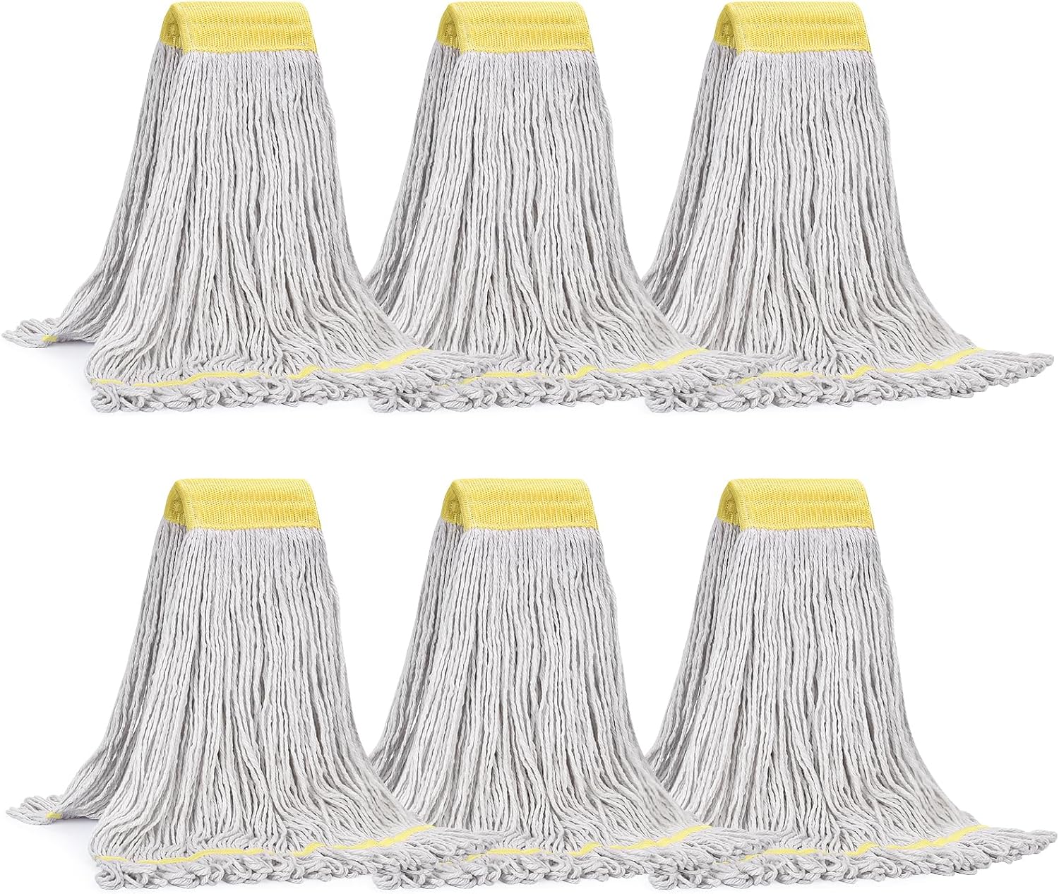 Matthew Cleaning Commercial Mop Head Replacement, 5 Inch Wide Headband, Looped End Cotton Blend String Wet Mops for Floor Cleaning, 24 oz Large, 6-Pack White