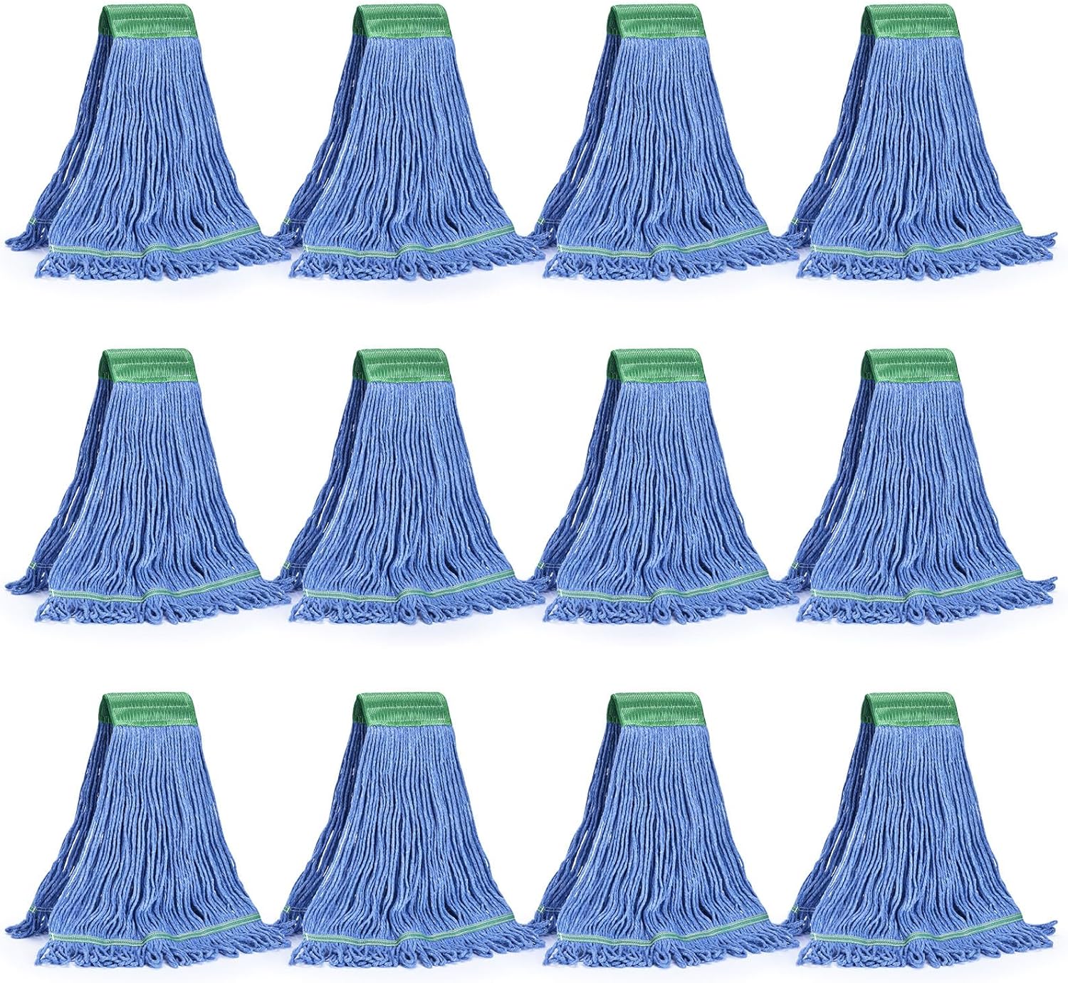 Matthew Cleaning Commercial Mop Head Replacement, 5 Inch Wide Headband, Looped End Cotton Blend String Wet Mops for Floor Cleaning, 18 oz Medium, Case Pack 12 Pcs Blue