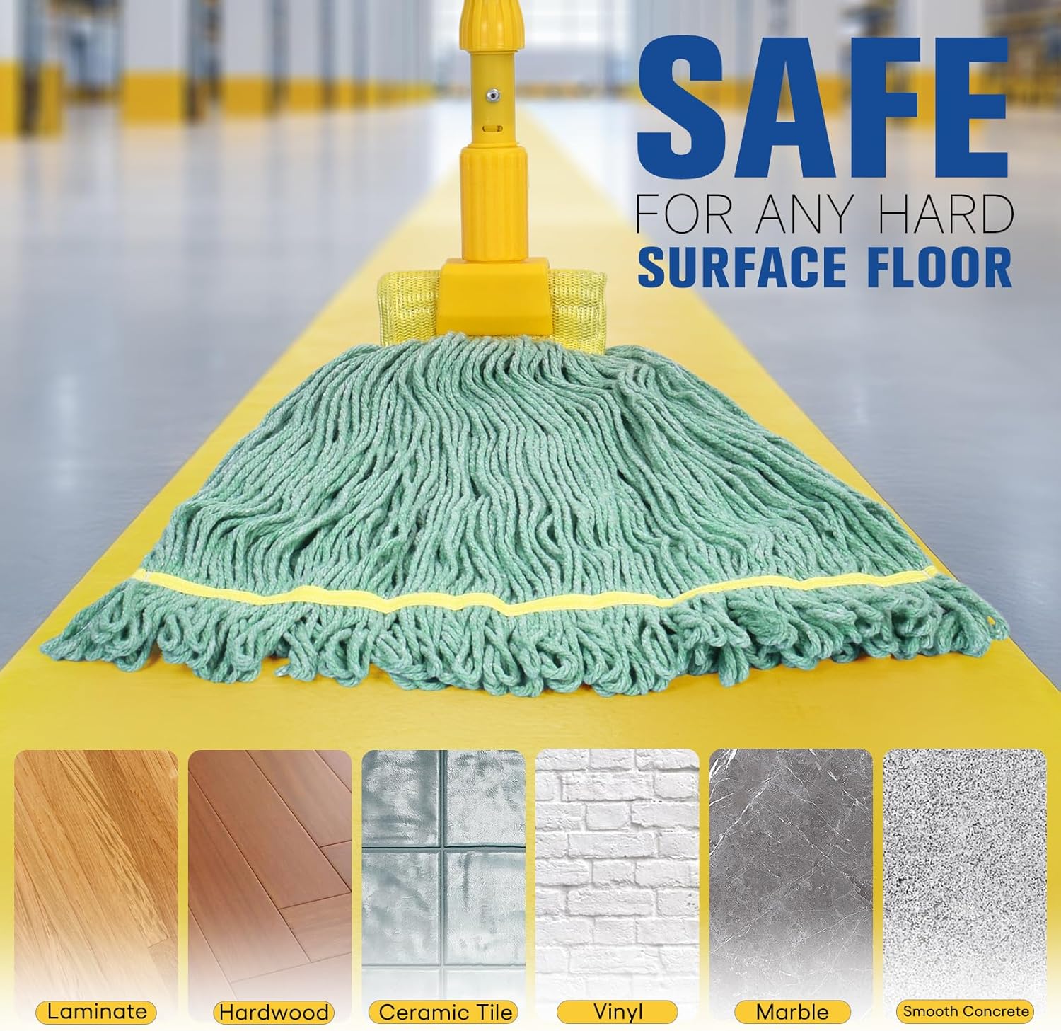 - Safe in Various Applications: This mop refill is safe to use on all hard surfaces for scratch-free, wet and dry mopping. Great for commercial, industrial, and residential use. The mophead replacement is perfect for any cleaning task including: industrial cleaning, janitorial, bars, hotels, restaurants, other food service establishments, and home environments.
