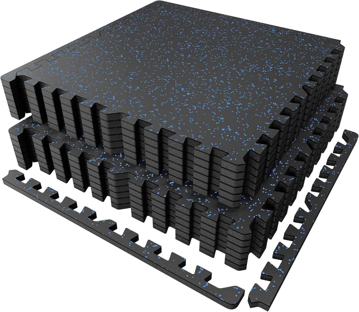 PRAISUN 0.6" Thicker Gym Mat, 12 Tiles 48 Sq Ft Workout Mats, Interlocking Foam Tiles with Rubber Top, High Density EVA Foam, Exercise Mat, Gym Flooring for Home Gym, Garage, 24 x 24in, Black/Blue