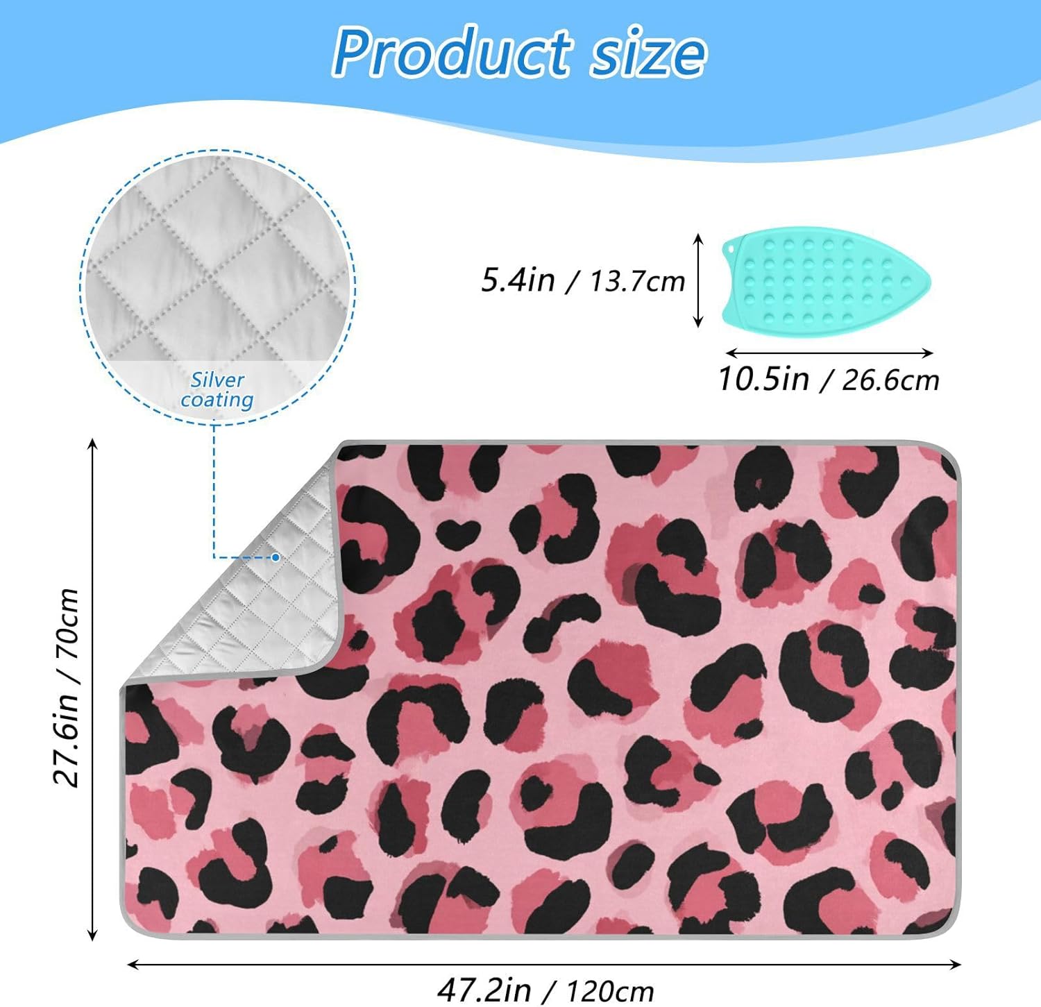 - Size:The size of this ironing board pad is 27.6*47.2in, with a foldable design that saves space for storage, is lightweight and flexible, making it convenient for home and travel use