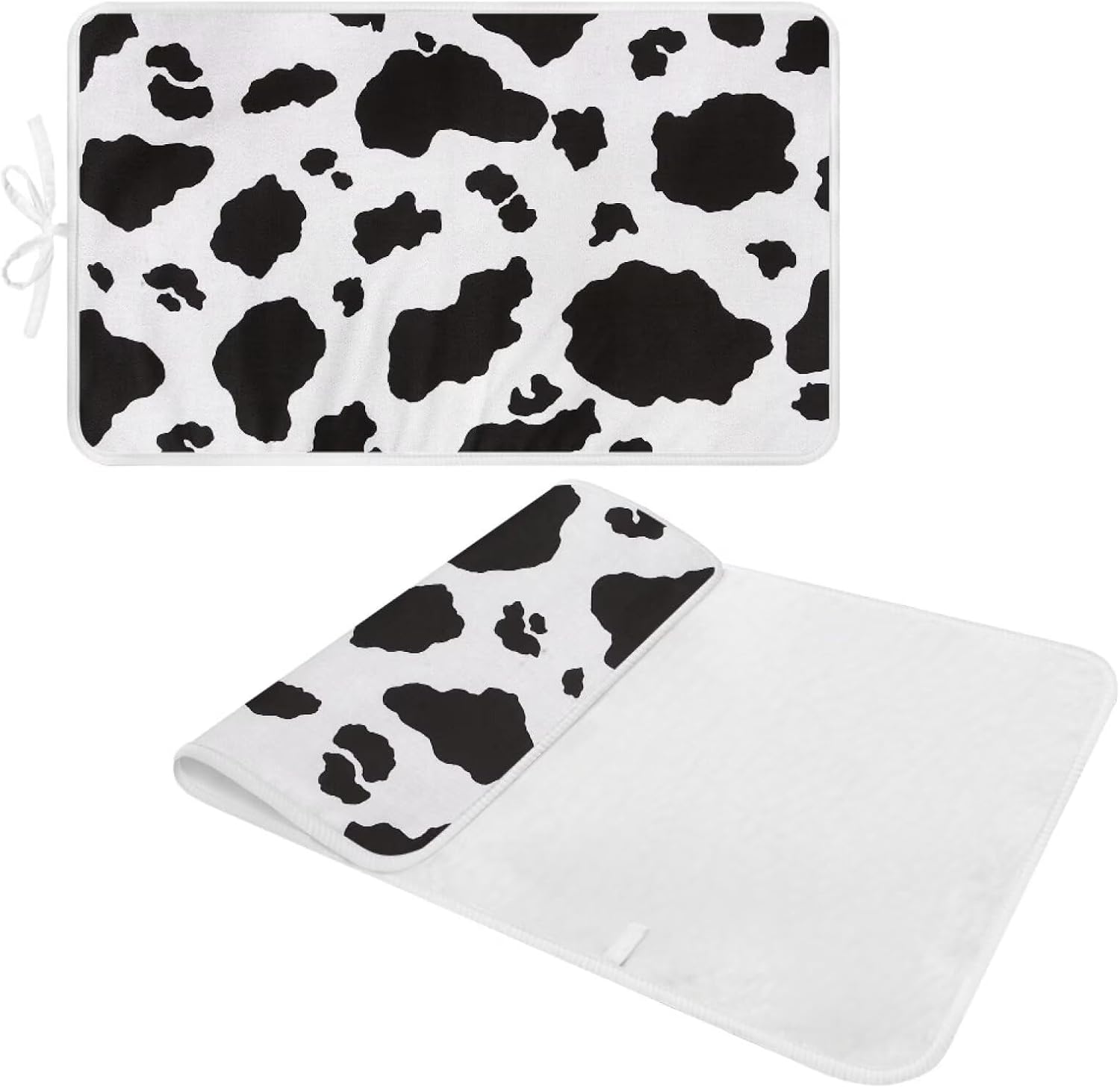 Cow Print Ironing Mat Portable Ironing Pad,Black and White 32 x 16 Inch Large Ironing Mat for Table Top of Washer, Dryer, Table Top, Countertop, Heat Resistant Iron Board Pads