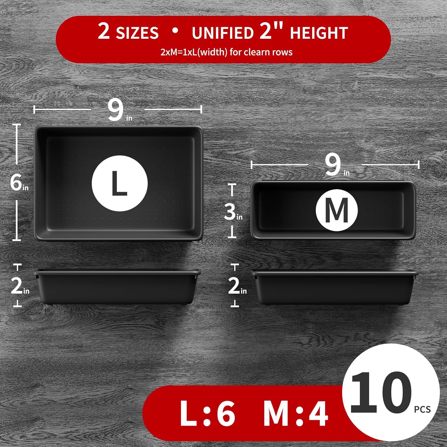 - 【Perfect Large & Medium Tool Tray Combination】Includes 6 Large (9"x6"x2") and 4 Medium (9"x3"x2") trays, ideal for hand tools, ratchets, wrenches, sockets, drills, and hardware. Fits tool box organizers and storage, garage cabinets, rolling tool chests, and workshop drawers.