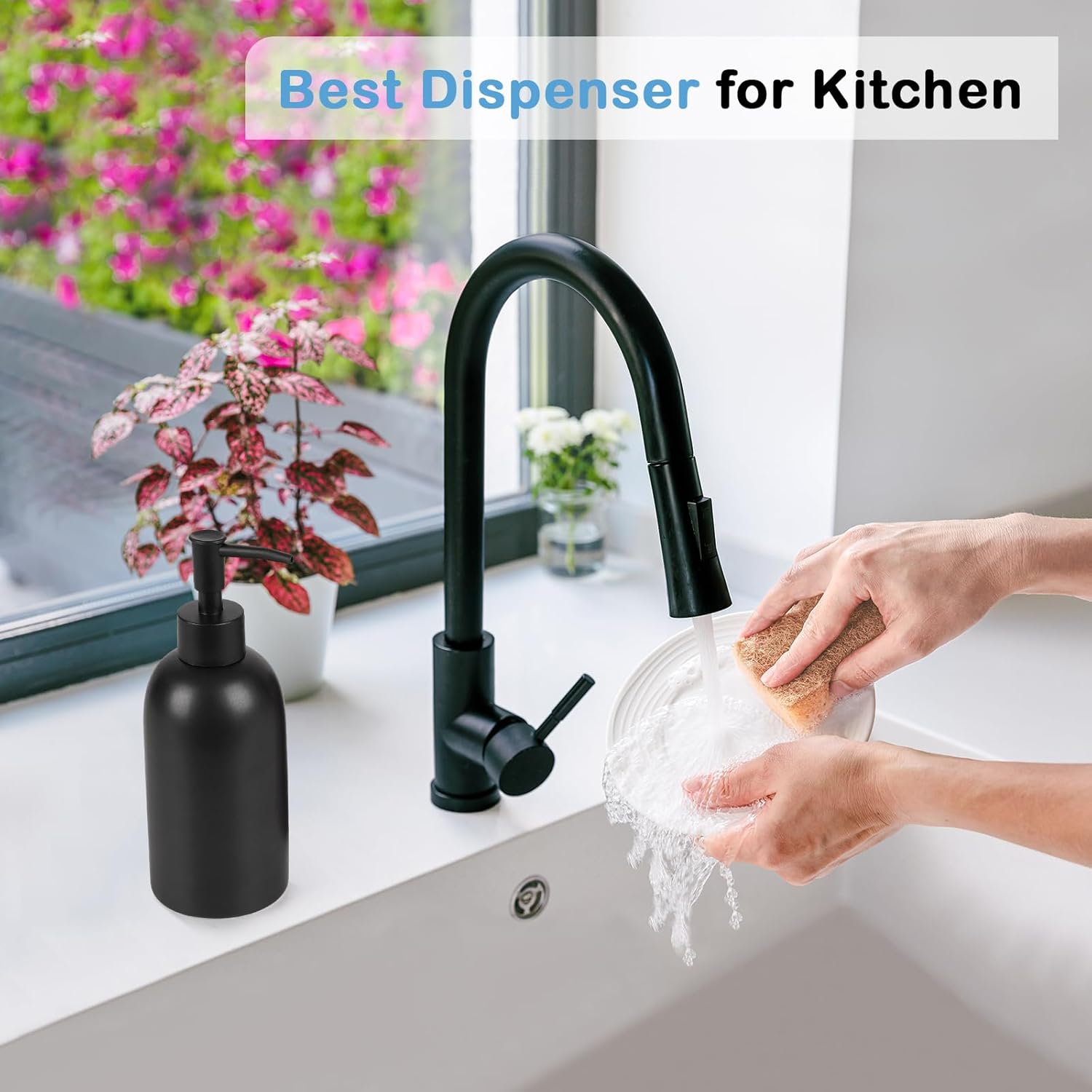 Natheeph 14OZ Ceramic Soap Dispenser Ceramic Soap Pump Dispenser Can Fill Liquid for Bathroom/Kitchen (Black)