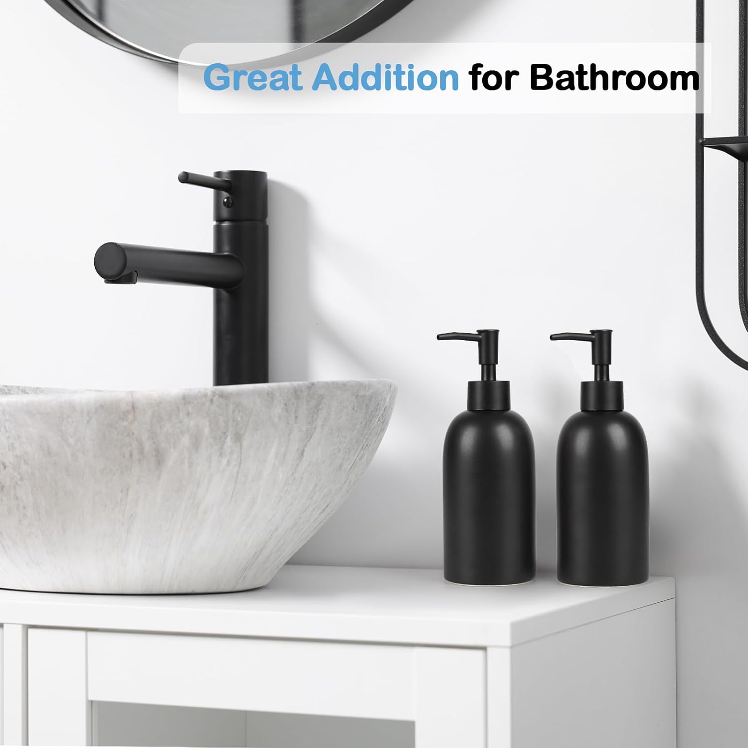Natheeph 14OZ Ceramic Soap Dispenser Ceramic Soap Pump Dispenser Can Fill Liquid for Bathroom/Kitchen (2PC Black)