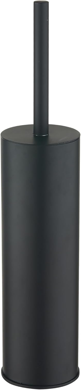 Toilet Brush and Holder Set Black Stainless Steel, 304 Heavy Duty Round Toilet Brush Set – Rust Resistant, Long Handle, Replacement Heads, Floor Standing Bathroom Toilet Cleaning Brush