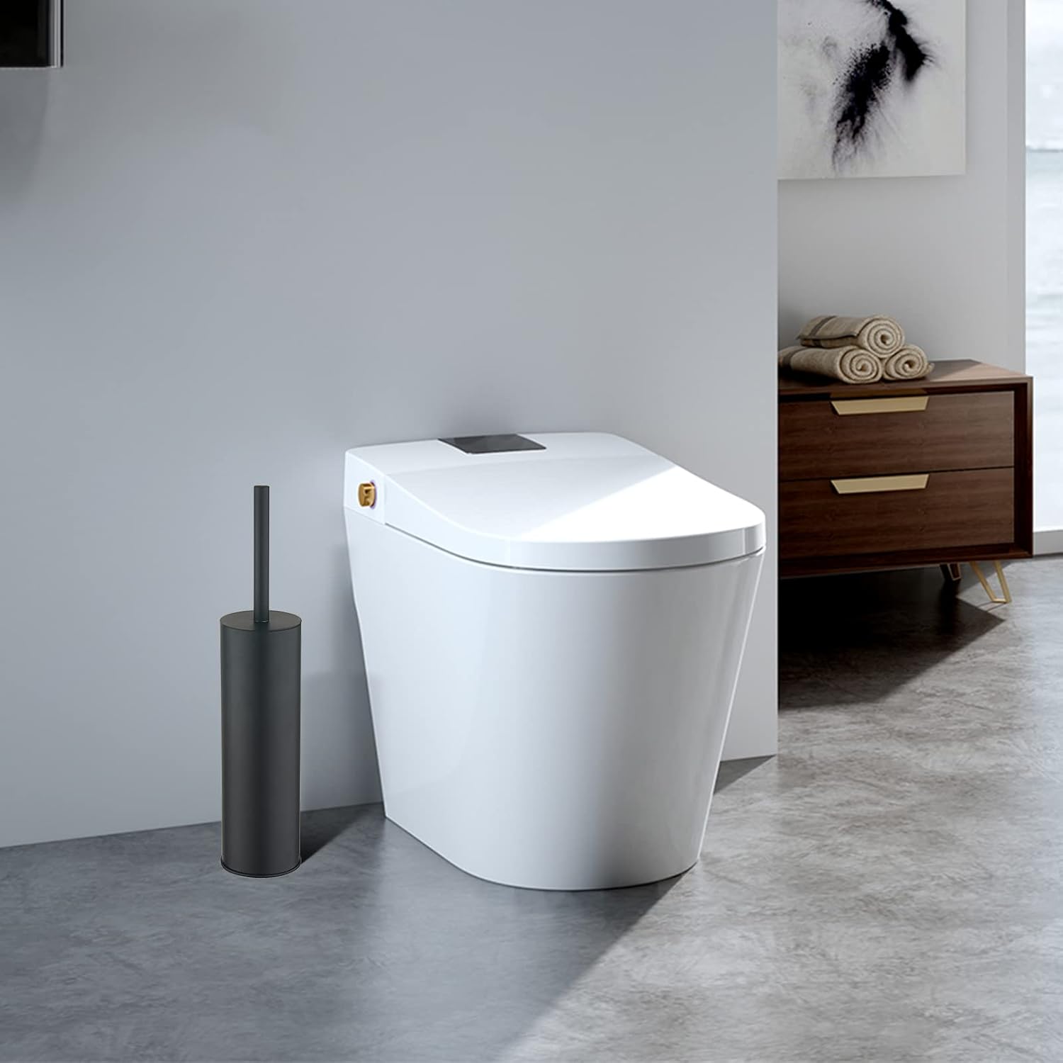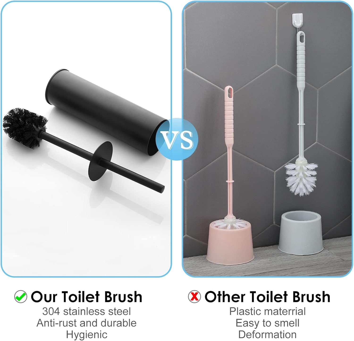 - 5. Elegant Modern Bathroom Essential - With its chrome-plated finish and minimalist design, this toilet brush and holder set blends seamlessly into modern bathrooms, guest toilets, hotels, or office restrooms.