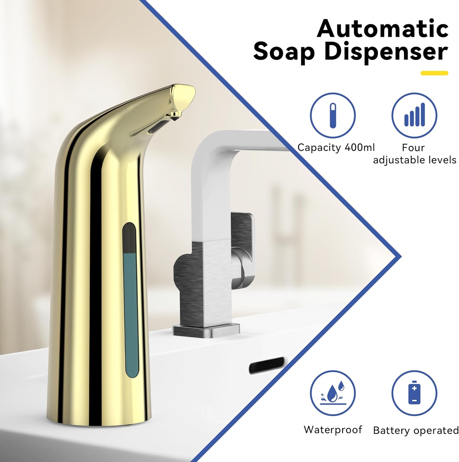 Automatic Soap Dispenser with Infrared Sensor - Adjustable 4-Level Touchless Hand Soap for Kitchen, Bathroom - Battery Operated Electric Dispenser, Durable Plastic, Smart Soap Holder