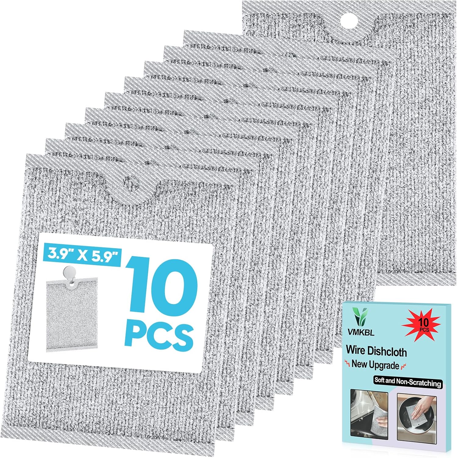 Steel Wool Scrubber, Wire Dishwashing Rags, 10 Pcs Multipurpose Wire Dishcloth, Wet & Dry for Cookware, Sinks, Dishes, Stoves & Fireplaces 5.9“ x 3.9”