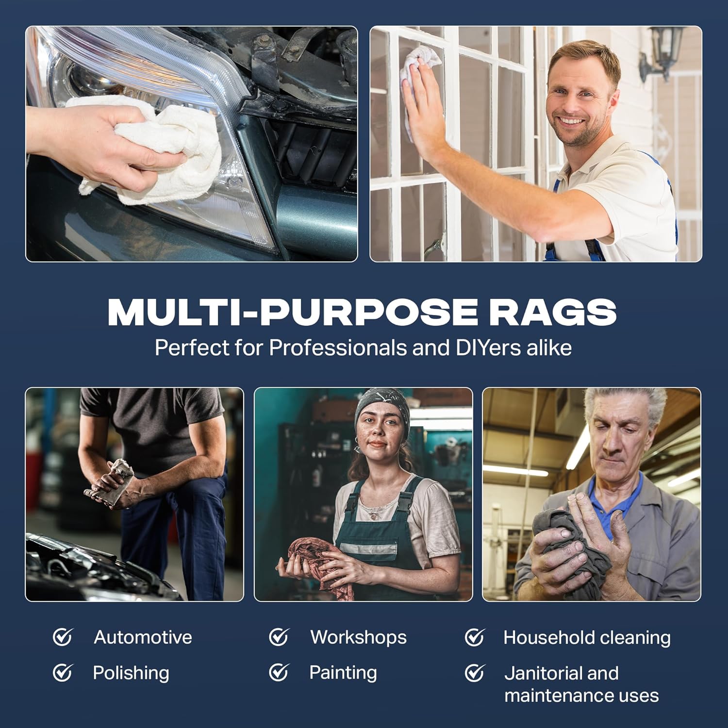 - Ideal for Pros & DIYers Alike: Whether you're detailing a car, painting furniture, cleaning up in a workshop, or working on a renovation, these shop rags are trusted by mechanics, painters, woodworkers, and home users. Their soft knit texture makes them perfect rags for cleaning both tough surfaces and more delicate finishes.