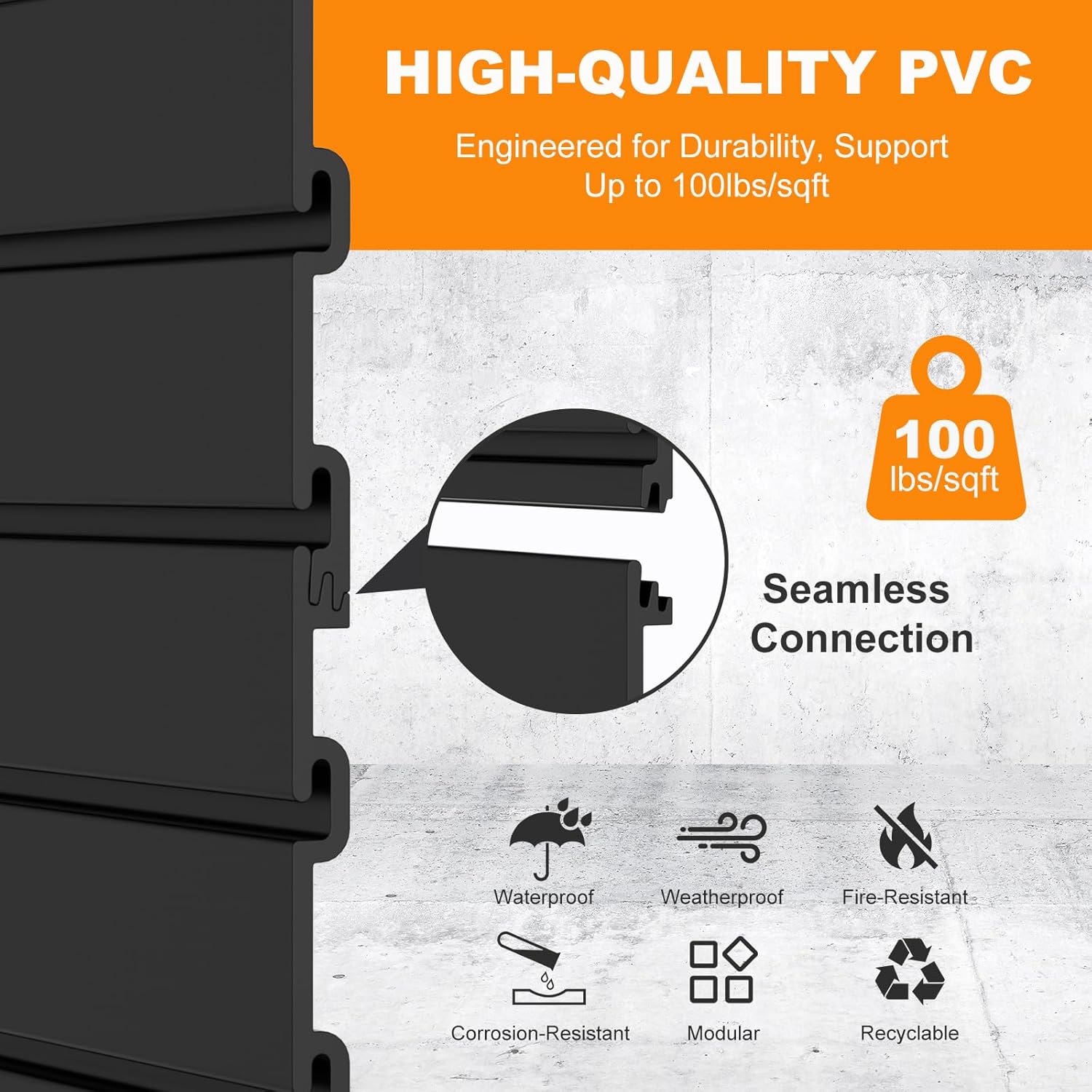 DoCred Slatwall Paneling Organizer, 4x7.5 FT PVC Garage Slat Wall Storage Systems, Heavy Duty Mounted Slat Peg Board for Tool Organization Ladder Bike Includes 20 PCS Hooks Accessories Kit (Black)