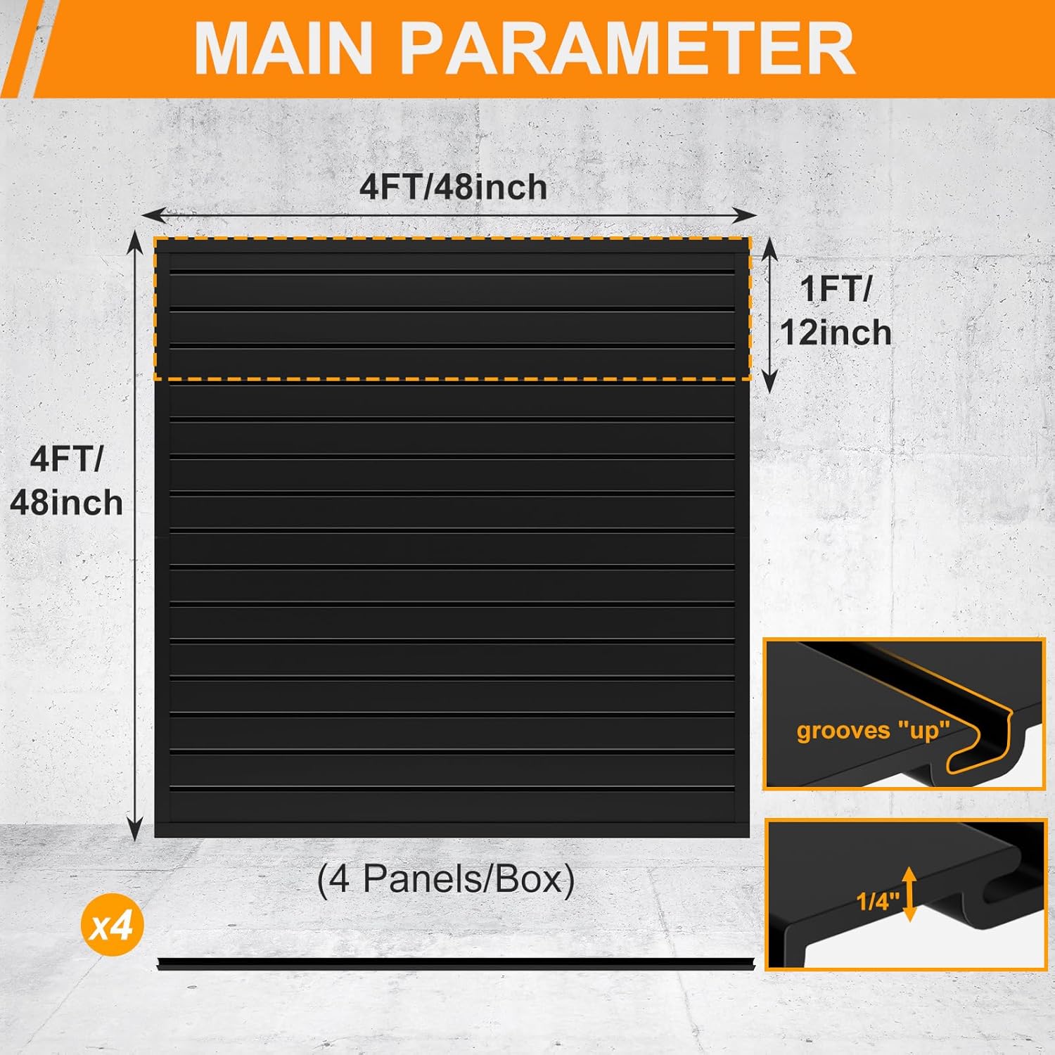 - Easy to Install: Each of our slatwall panels is composed of 2/4/8 pieces of 4ftx2ft, 4ftx4ft, 4ftx7.5ft purchase size, to provide you with a variety of choices. Installation can be done quickly with tools such as a level and rechargeable drill. If you need more load-bearing capacity, install more screws