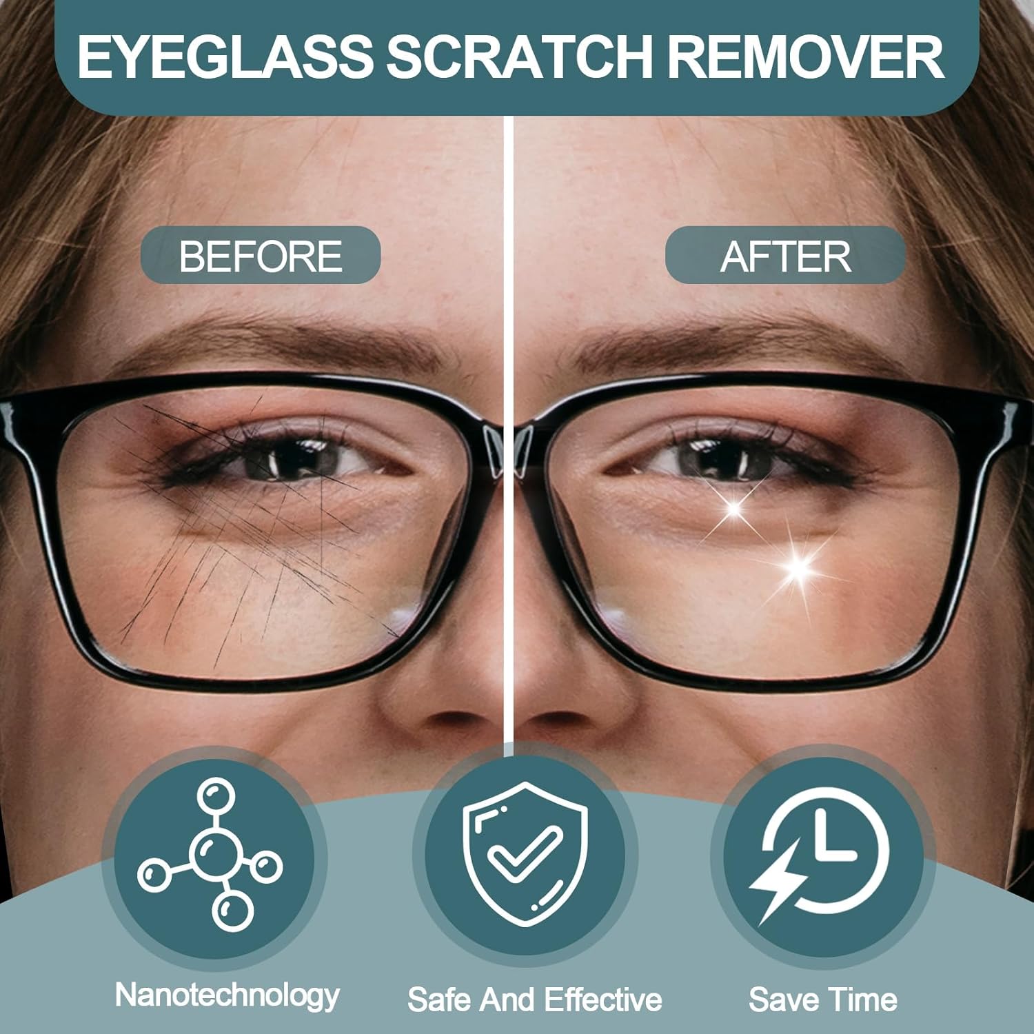- Effective Glasses Scratch Remover: Our eyeglass scratch repair spray is specially formulated to effectively eliminate scratches on eyeglasses, sunglasses, and screens.